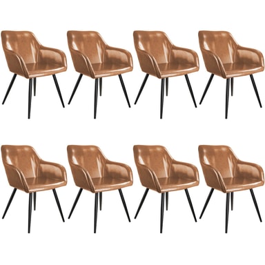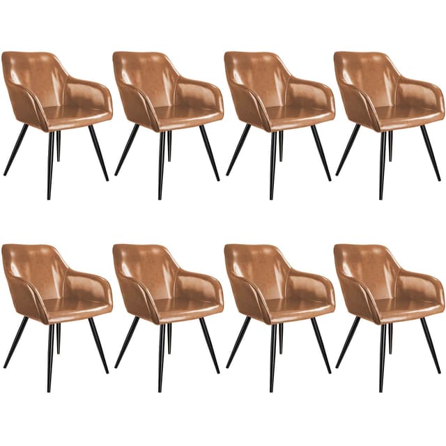 Denne elegante Marylin-stolen fra tectake er et absolutt must for enhver fan av moderne interiørdesign. De elegante linjene gjør at dette møbelet står like godt som en aksent alene, i par eller som en del av en gruppe. Den komfortable polstringen under trekket i kunstskinn sikrer komfort når du lener deg tilbake og slapper av. Fire avrundede ben danner den spenstige rammen som på en dyktig måte fullfører de mange fordelene som tilbys av denne polstrede stolen. Perfekt for i kjøkkenet, stuen eller på kontoret.