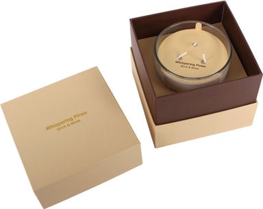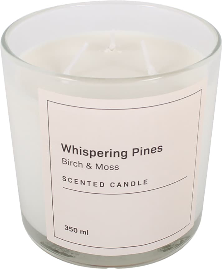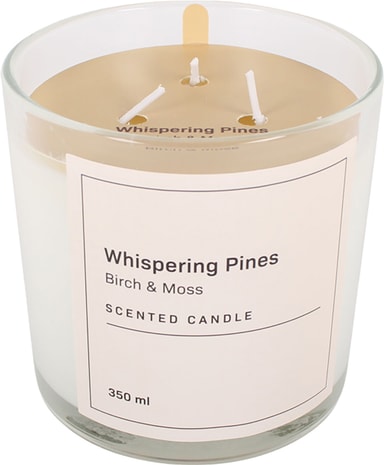A Home Whispering Pines duftlys A100042 på 350 g har en forfriskende duft av skog med granbalsam og eukalyptus, krydret med myrra og safran, og med en grunntone av patchouli, lær og oljetre.Les mer om produktet