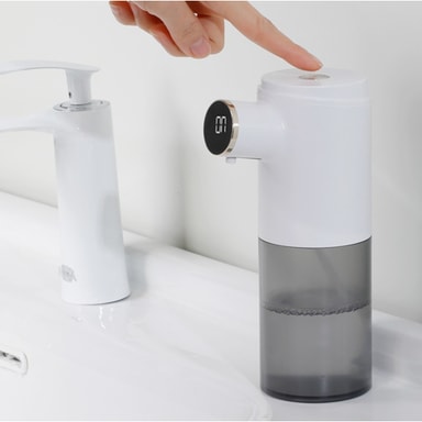 Automatisk berøringsfri såpedispenser med infrarød sensor, justerbare skumnivåer og temperatur- og batteridisplay. Ideell for hygienisk håndvask i hjem, kontorer og offentlige rom. 300 ml kapasitet, USB-oppladbar.Les mer om produktet
