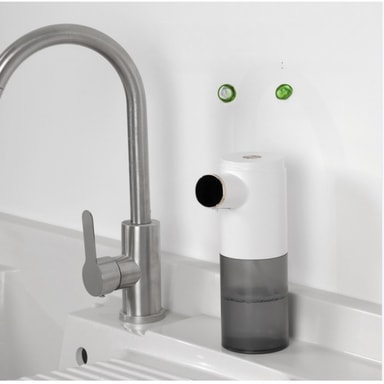 • Automatisk berøringsfri såpedispenser med gel – infrarød sensor, justerbart skumnivå, temperatur- og batteridisplay Hvit