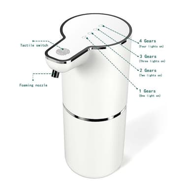 Vår smarte såpedispenser er ikke bare praktisk, men også vanntett med en IPX5-klassifisering. Dette betyr at den tåler sprut og fuktighet, noe som gjør den ideell for bruk i våte miljøer som kjøkken og bad. Du trenger ikke å bekymre deg for vannskader eller funksjonsfeil. Den robuste konstruksjonen sikrer langvarig bruk og pålitelighet. I tillegg har den en generøs kapasitet på 350 ml, slik at du ikke trenger å fylle den ofte. Nyt en problemfri og hygienisk håndvaskopplevelse med vår vanntette og smarte såpedispenser.