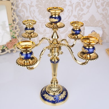 Allsidig hjemmeinnredning: Denne 5-hoders lysestaken fungerer som et fantastisk midtpunkt for ethvert bord eller peishylle. Dens tidløse design utfyller en rekke innredningsstiler, fra klassisk til moderne. Bruk den til å tilføre et snev av glamour til stuen, spisestuen eller soverommet ditt. De mange lysholderne gir mulighet for kreative lysarrangementer, noe som gjør den til et allsidig tillegg til din hjemmeinnredningskolleksjon. Sinklegeringskonstruksjonen sikrer at denne lysestaken vil forbli et kjært stykke i mange år fremover, og tilfører et snev av eleganse til ethvert rom.