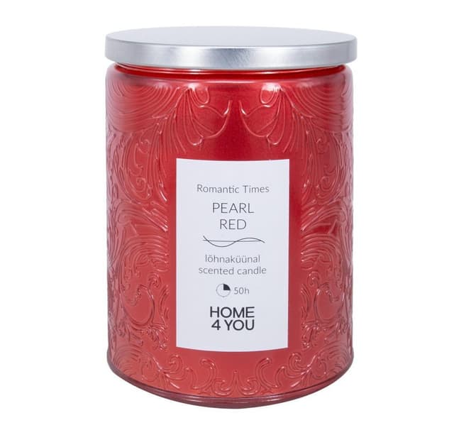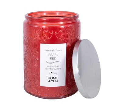 • Glasskrukkelys ROMANTIC TIMES H11cm, perlerød