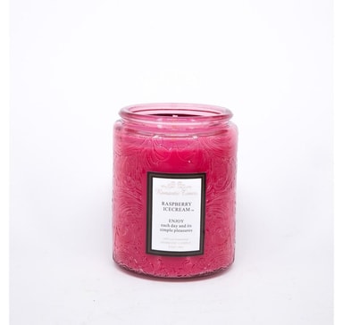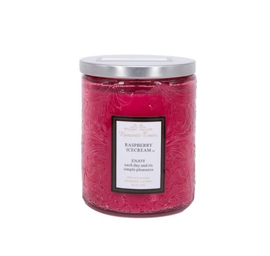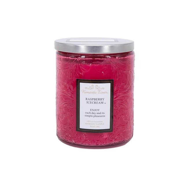 Glasskrukkelys ROMANTIC TIMES, D7xH9cm, med lokk, rosa, (duft- RASBERRY ICECREAM). Brennetid ca 32 timer. Klarfarget glasskrukke med lokk, fargematchende voks i flekkete finish med duft 2%.