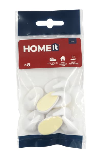 HOME It® selvklebende krok i plast, 27×17 mm, 8 stk.