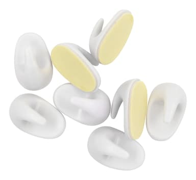 Selvklebende krok til montering på glatte flater. Høyde: 27 mm Bredde: 17 mm Materiale: plast Farge: hvit Belastning: maks. 500 g Innhold: 8 stk.Les mer om produktet