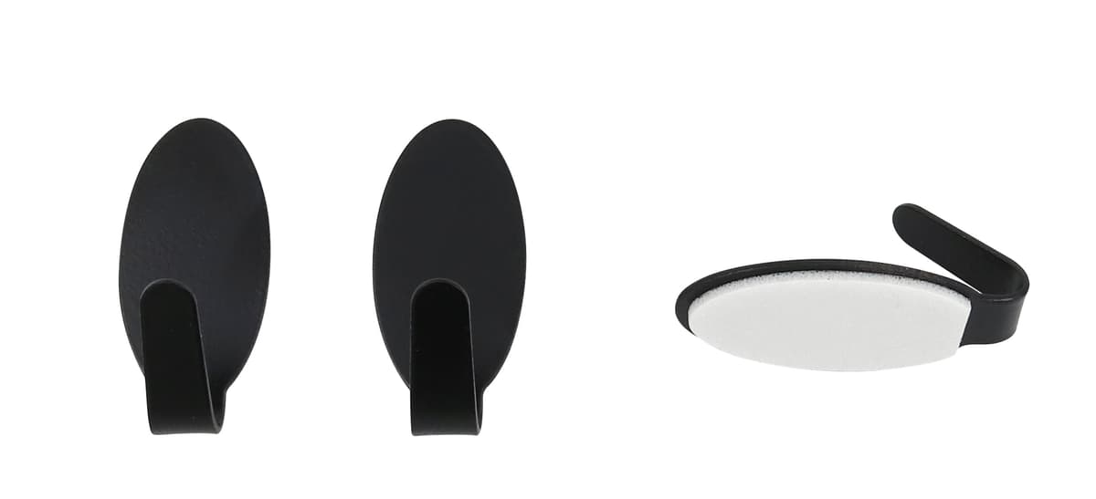 Selvklebende krok til montering på glatte flater. Høyde: 35 mm Bredde: 15 mm Materiale: pulverlakkert stål Farge: svart Belastning: maks. 1 kg Innhold: 3 stk.Les mer om produktet