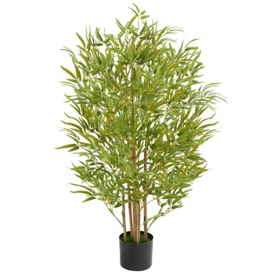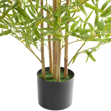 Kunstplanten leveres i en blomsterpotte av robust plast som gir en spesielt stabil base og absolutt stabilitet. Enten i stuen eller på kontoret - bambustreet er rett og slett et ekte høydepunkt overalt. Det krever ingen omfattende pleie, men forblir permanent i sin fulle prakt. En regelmessig avtørking av bladene er nok for å holde den støvfri.