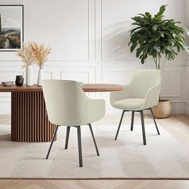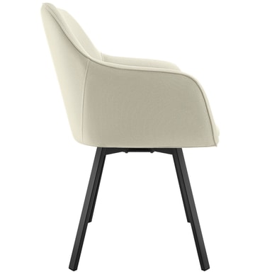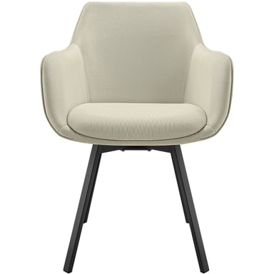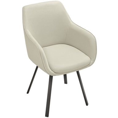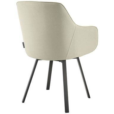 Den elegante spisestuestolen imponerer med sitt komfortable sete med en ergonomisk arm- og ryggstøtte, som gir optimal avlastning for kroppen din. Den komfortable polstringen av høydensitetsskum gir deg også en myk sitteopplevelse. Det robuste vevstoffet er svært holdbart og lett å vedlikeholde, noe som gjør møbelet til det perfekte valget.