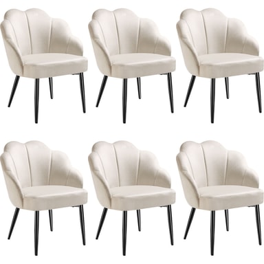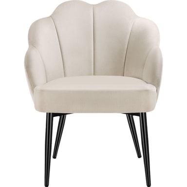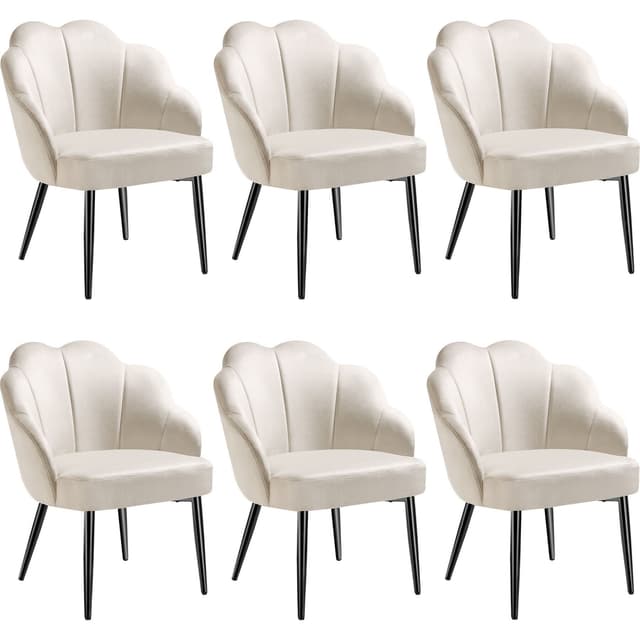 Den spesielle sjarmen ligger i den elegante skjellformen på ryggstøtten, som ikke bare er visuelt imponerende, men - akkurat som sitteflaten - også overbeviser med sin komfortable polstring. Det myke trekket av velour gir en behagelig følelse mot huden og krever minimalt med vedlikehold.