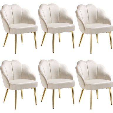 Den spesielle sjarmen ligger i den elegante skjellformen på ryggstøtten, som ikke bare er visuelt imponerende, men - akkurat som sitteflaten - også overbeviser med sin komfortable polstring. Det myke trekket av velour gir en behagelig følelse mot huden og krever minimalt med vedlikehold.