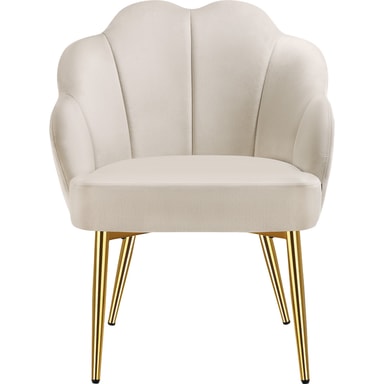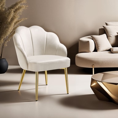 Den spesielle sjarmen ligger i den elegante skjellformen på ryggstøtten, som ikke bare er visuelt imponerende, men - akkurat som sitteflaten - også overbeviser med sin komfortable polstring. Det myke trekket av velour gir en behagelig følelse mot huden og krever minimalt med vedlikehold.