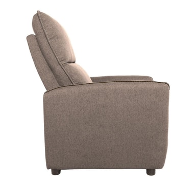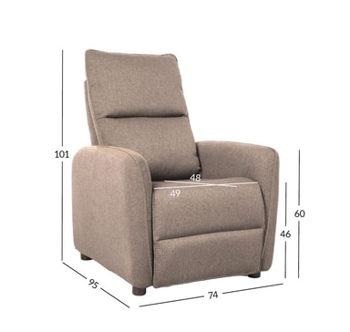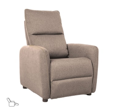 Lenestol ZAC med push-back-mekanisme, beige. Plasseringen av ryggstøtten og fotstøtten på lenestolen med recliner kan endres ved hjelp av en manuell push-back-mekanisme. Med denne typen mekanisme er det ingen knott eller spak for å justere lenestolens posisjon. Mekanismen aktiveres når trykk påføres ryggstøtten. Trekkmateriale: 100 % polyesterstoff. Ramme og oppheng: tre, kryssfiner og metall. Innvendig i setet er det pocketfjærer. Polstring: polyuretanskum. Stolens totale mål er 74 x 95 x H 101 cm.