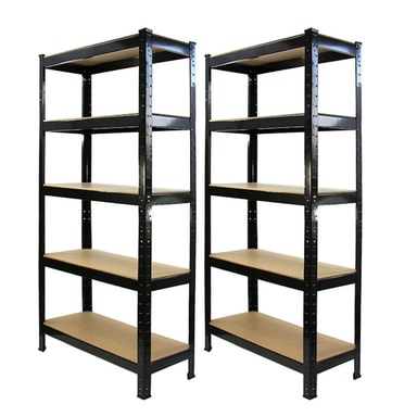 Hver hylle måler 75 cm (bredde) x 30 cm (dybde) x 150 cm (høyde) og er perfekt for bruk i garasjen, verkstedet, kontoret og boden, siden hver av de fem hyllene kan bære opptil 150 kg.