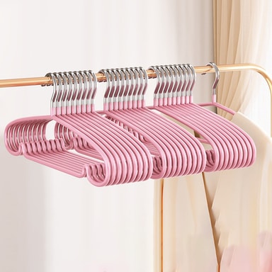 Sklisikkert design: Disse kleshengerne har et unikt rillet design som holder plaggene sikkert på plass og forhindrer at de sklir eller faller. Sklisikker funksjon sørger for at klærne dine holder seg på plass, selv delikate stoffer som silke eller sateng, og holder dem krøllefrie og i perfekt stand.