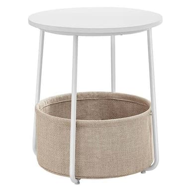 Rundt sidebord med stoffkurv - HvitLes mer om produktet