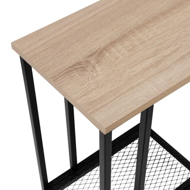 Drikkevarer og godteriskålen ser like fine ut som arbeidsdokumenter og den bærbare datamaskinen gjør på det vakkert designede Eton sidebordet fra tectake. Den asymmetriske C-formen skaper et luftig og lett look, og gjør at den minimalistiske konstruksjonen på sidebordet lett kan puffes inn under en sofa, seng eller lenestol. Høydejusterbare plastikkføtter på sidebordet kompenserer for enhver helning og beskytter gulvet. Den nødvendige stabiliteten garanteres av den pulverlakkerte stålrammen, hvis sorte farge gir det fleksible sidebordet et sammenhengende helhetsutseende.