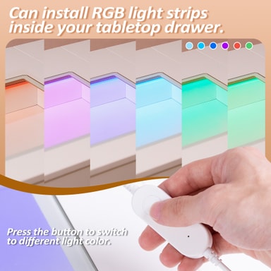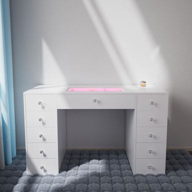 Den midterste skuffen har en RGB LED-lysstripe med justerbare innstillinger i 7 farger (blå, cyan, grønn, rosa, rød, hvit, gul). Dette skaper stemningsfull belysning for soverommet og toalettbordet ditt, og gir rommet livlige farger.