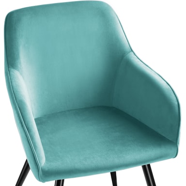 Denne elegante polstrede stilige aksentstolen fra tectake har et fløyelstrekk for å legge til glamour til hjemmet ditt. Denne spisestolens rike farge er et ekte blikkfang, og kan kombineres optimalt med ulike interiørstiler. Stolen har en robust stålramme som garanterer utmerket stabilitet og spenst, mens plasthettene på de fire føttene reduserer støy og forhindrer riper på rommets gulv. Ved siden av sitt attraktive utseende og eksepsjonelle materialegenskaper, lever dette smakfulle møblet med sine komfortable armlener og polstring også opp til forventningene når det gjelder komfort. Perfekt for både å slappe av i stuen eller å bruke ved spisebordet. Hvis du trenger en ny moderne stol som vil utmerke seg i både komfort og stil, trenger du ikke lete lenger enn til denne Marilyn-stolen med armlener fra tectake.