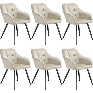 Stolen Marilyn fra tectake kombinerer moderne design med høyeste komfort. Det myke velourtrekket med elegant quiltet mønster gir en spesielt myk følelse mot huden og tilfører spisestuen eller kjøkkenet ditt en elegant touch.