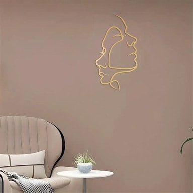 Stilig veggdekorasjon i metall med abstrakt ansiktsdesign