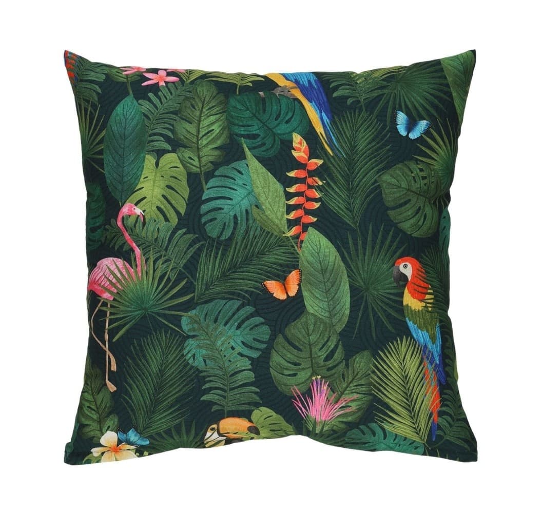 Pute HOLLY 45x45cm, med glidelås, tropisk, stoff 100% bomull, stoff 486. PLEIE: puten kan vaskes på 30 grader i vaskemaskinen.