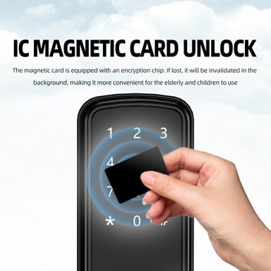 Allsidige tilgangsmetoder: Denne smarte dørlåsen tilbyr allsidige tilgangsalternativer, inkludert APP-kontroll, passordinntasting, kortlesing og tradisjonell nøkkeladgang. Dette sikrer praktisk adgang for ulike brukere og situasjoner. APP-tilkoblingen gir mulighet for fjernlåsing og administrasjon, noe som gir økt sikkerhet og kontroll over tilgangen til hjemmet eller kontoret ditt. Ideell for familier, utleieboliger eller bedrifter som trenger fleksible adgangsløsninger. Integreringen av flere metoder sikrer at du aldri blir låst ute, selv om du glemmer nøkkelen eller passordet ditt. Denne smarte låsen er kompatibel med ulike dørtyper og tilbyr en sømløs blanding av sikkerhet og bekvemmelighet.