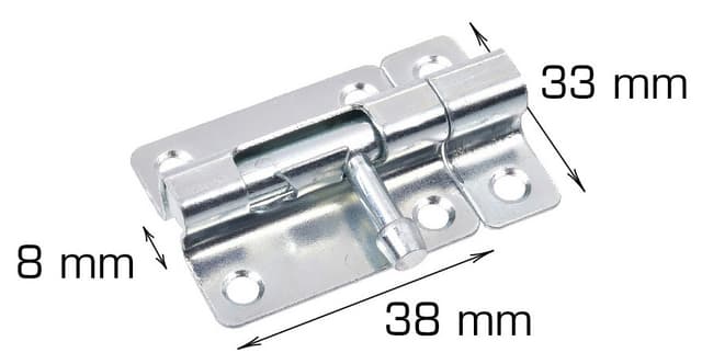 Mått: L38 x B33 x Ø8 mm Inkl skruvar Material: Elfz.