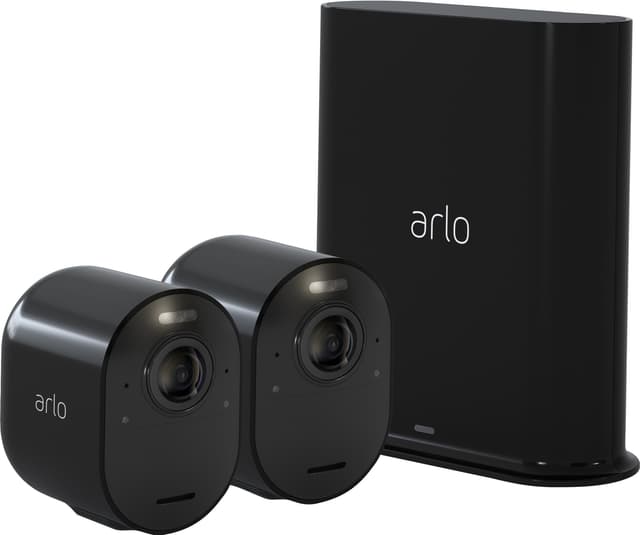 Sikkerhetskamerasystemet Arlo Ultra 4K lar deg overvåke hjemmet ditt eller eiendommen din både på innsiden og utsiden uten å måtte styre med kabler. Systemet inkluderer to Arlo Ultra 4K-kameraer og en SmartHub-basestasjon med integrert alarm.