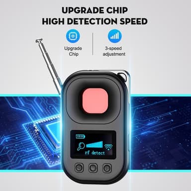 T30 skjult kameradetektor Magnetisk GPS-avlyttingsdetektor Infrarød kamerasøker【Infrarød deteksjon】Oppdager skjulte kameraer og trådløse enheter innen en rekkevidde på 10 meter for å beskytte personvern og sikkerhet【Magnetisk GPS-deteksjon】IdentifiseLes mer om produktet