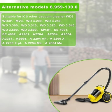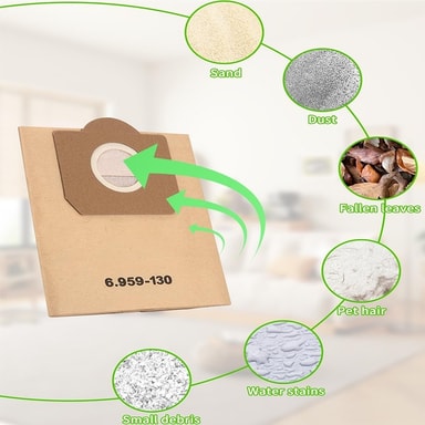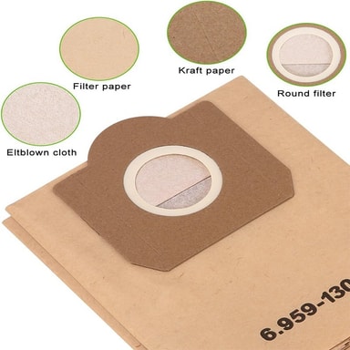 Overlegen filtrering: Opplev forbedret rengjøringsytelse med disse papirstøvsugerposene, designet for å fange opp fine partikler og allergener effektivt. Det høykvalitets papirmaterialet sikrer optimal filtrering, og forhindrer at støv og smuss resirkuleres tilbake i hjemmemiljøet ditt. Ideell for husholdninger med allergikere eller de som søker en dypere rengjøring, bidrar disse posene til forbedret luftkvalitet og et sunnere bomiljø. Regelmessig utskifting av disse posene vil opprettholde sugekraften til støvsugeren din og forlenge levetiden. Disse posene er kompatible med Karcher WD2 Premium, MV2, WD 2.200 til WD 2.550-serien støvsugere.