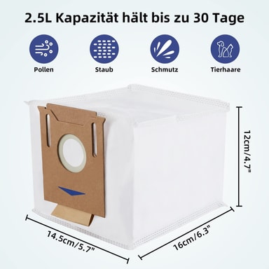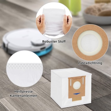 Høykvalitets støvsugerposer for Ecovacs DEEBOT OZMO T8/T8 AIVI/T8 MAX/N8 Pro/N8 Pro Plus, Yeedi Vac og Yeedi Vac MAX. De er laget av tett og slitesterkt materiale og enkle å bytte uten søl.