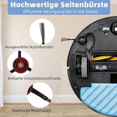 Optimalisert rengjøringseffektivitet: Hovedbørsten og sidebørstene er utformet for effektivt å fjerne smuss, rusk og dyrehår fra ulike gulvflater, inkludert hardtre, fliser og tepper. Hovedbørsten har en kombinasjon av børster og gummiblader for å røre og løfte smuss, mens sidebørstene når inn i hjørner og langs kanter for en fullstendig rengjøring. Regelmessig utskifting av disse børstene sikrer at Ecovacs Deebot N8-serien robotstøvsuger fortsetter å levere optimal rengjøringsytelse. Moppkluten er perfekt for å fjerne flekker og søl, og etterlater gulvene dine skinnende rene. Dette settet er kompatibelt med Deebot N8, N8+, N8 Pro, N8 Pro+, T9, T9+, N10+, OZMO 950, 920, T8, T8+, T8 AIVI, T8 AIVI+ og T8 MAX.