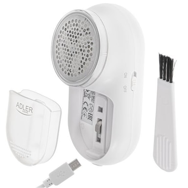 Spesifikasjoner - Klippeområde: 4,5 cm x 4,5 cm - Motorhastighet: 6500 o/min - Batterilevetid: 40 minutter - Ladetid: 3-6 timer - Batteri: 600 mAh Ni-MH - Lengde på USB-kabel: 0,4 m - Spenning: 5V - Effekt: 2W - Innebygd rengjøringsbørste - Avtakbart blad i rustfritt stål - Tømmebeholder med én knapp