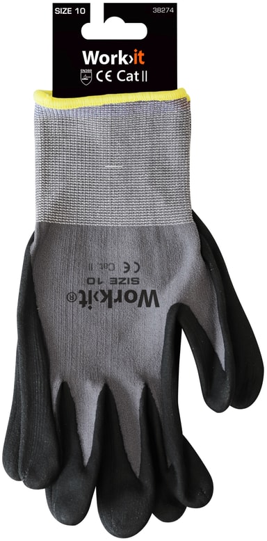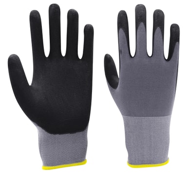 Arbeidshanske Flex Størrelse: 10 Kantfarge: gul Materiale: nylon/lycra med overflate av mikroskum/nitril Hansken er silikonfri Maskinvaskbar på 40 grader CE - EN388/EN420 - kat. II REACH-godkjent