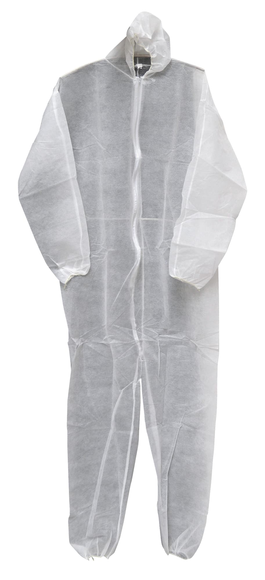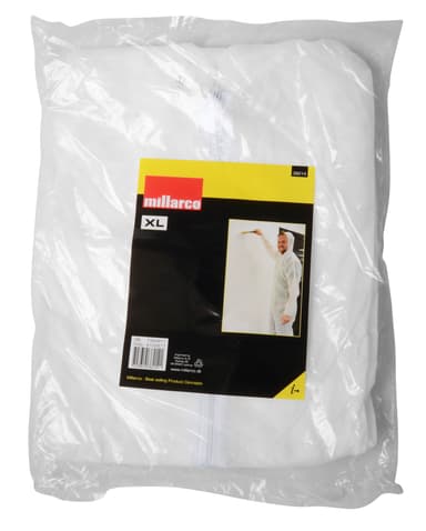 Onesize Farge: Hvit Med hette, lynlåslukking og elastikk i armer og beinLes mer om produktet