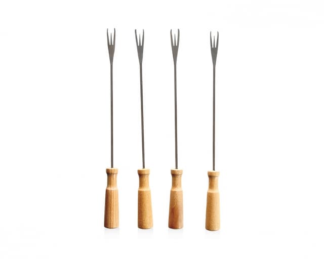 Få et ekstra godt grep om fondue-dippen. Med tre tenner faller ikke dippen like lett fra gaffelen. Håndtak av eik, som ligger komfortabelt i hånden og som også gir fonduegaffelen et luksuriøst utseende. Fondue-gaflene kommer i et sett med fire. Vil du hente en osteblokk under drinker eller dykke ned i en deilig fondue? Velg disse praktiske gaflene. Om BOSKA BOSKA lager ""Food Tools for Life"" og mener at kvalitet er bærekraft. Målet deres er å designe produkter som varer hele livet. Det hele begynte i nærheten av Gouda, i Holland, hvor smeden Willem Bos lagde sine første osteredskaper for de lokale bøndene. Fra den dagen har det vært en familientradisjon å lage morsomme og smarte redskaper slik at du kan nyte ost, sjokolade, pizza og mer. Så enten du skjærer, river, griller eller smelter, hjelper BOSKA deg med å lage appetittvekkende mat og en fest på bordet ditt. Vel bekomme!