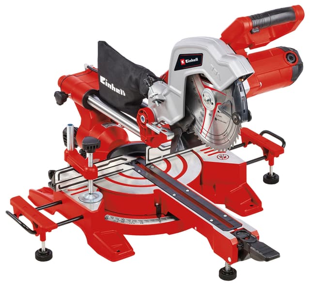 Med lettgående uttrekk til brede arbeidsemner Dreibart sagbord med nøyaktige vinkelinnstillinger for skråsnitt, og faste vinkelinnstillinger ved de mest brukte vinklene Saghodet kan vippes mot venstre til perfekte snitt Med laser for rask og enkel merking av sagelinjen Uttrekksskinner på begge sider for å støtte opp lange arbeidsemner Presisjonssagblad med hardmetalltenner gir perfekte snitt Med spindellås for raskt og enkelt sagbladskift Med skrutvinge for å holde fast arbeidsemnet Lett leselige skalaer for vinkel og bredde Støvtrakt bak ved sagbladet gir bedre avtrekk av sagmugg Strømforsyning: 220-240 V | 50 Hz Effekt: 1 500 W Maks. effekt (S6 | S6 %): 1 600 W | 25 % Hastighet ubelastet: 5 200 o/min Sagblad: Ø216 ר30 mm Antall tenner på sagbladet: 48 tenner Skråskjæring, loddrett: -45°-0° Skråskjæring, vannrett: -47°-+47° Skjærebredde og -dybde ved 90°/90°: 305×65 mm Skjærebredde og -dybde ved 90°/45°: 215×65 mm Skjærebredde og -dybde ved 45°/90°: 305×35 mm Skjærebredde og -dybde ved 45°/45°: 215×35 mm Diameter på støvavsugsstuss: 36 mm Maks. skjærebredde (45°): 215 mm Maks. skjærebredde (90°): 305 mm