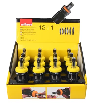Kort skralleskrutrekker Settet inneholder: 6 x dobbelt bits 30 mm: PH: 1-2 PZ: 1-2 LK: 4-5-6 mm Torx: T10-T15-T20-T25-T30Les mer om produktet