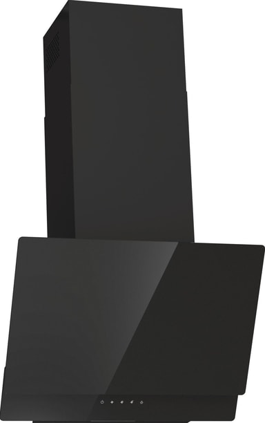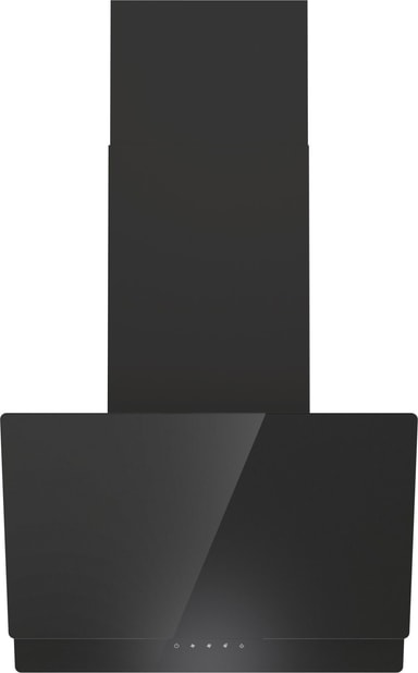 Veggmontert vifte, 60 cm. Svart glass. Vertikal. Energiklasse B, fettfiltrering C. Lys A. 608 m³/h, 63 dB. Berøringskontroll for enkel betjening. Perimetrisk suging, filtre med polyuretanskum. LED-lys for langvarig og effektiv belysning.