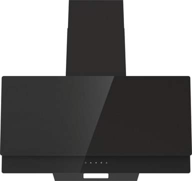 Veggmontert vifte, 90 cm. Svart glass. Vertikal. Energiklasse B, fettfiltrering C. Lys A. 608 m³/h, 63 dB. Berøringskontroll for enkel betjening. Perimetrisk suging, filtre med polyuretanskum. LED-lys for langvarig og effektiv belysning.