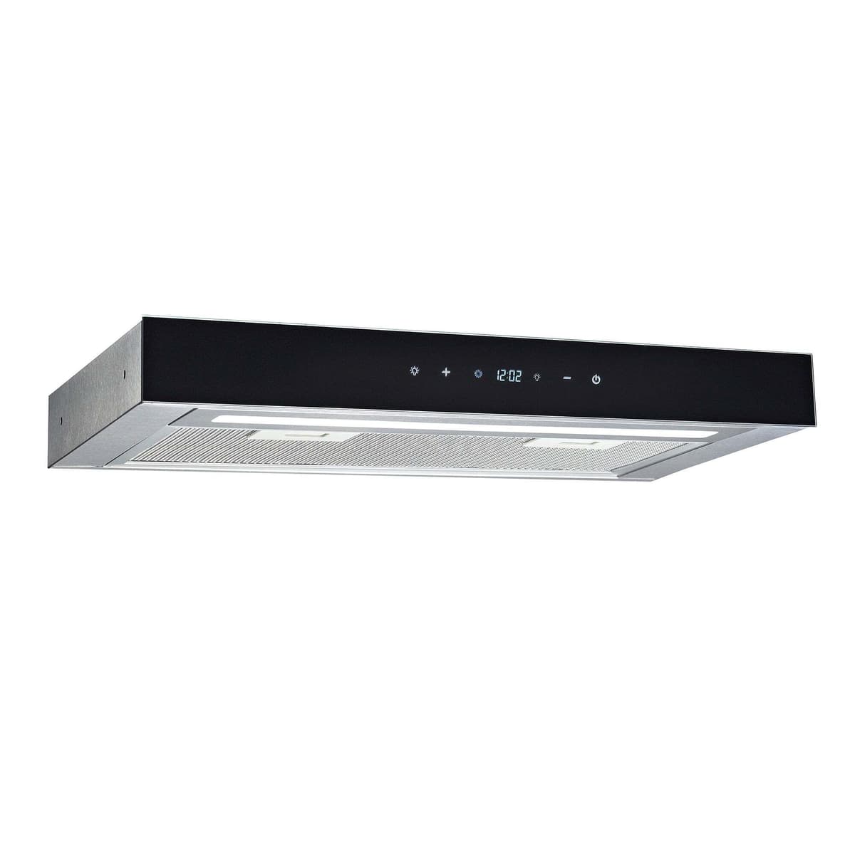 Elegant touch-kontroll med LCD-display i front. Det medfølger en LED-lyslist integrert i viften. Viften har doble viftemotorer og aluminiumsfilter.