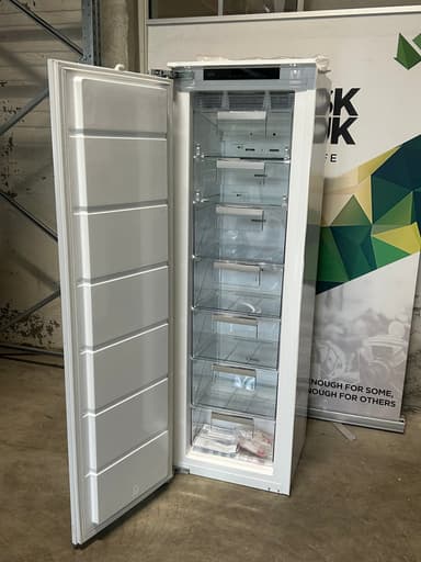 AEG ABE818F6NC er et integrert fryseskap som kombinerer romslig kapasitet med moderne fryseteknologi. Med 204 liter netto kapasitet, automatisk NoFrost-funksjon og hurtigfrys med Frostmatic, holder maten seg frisk og velsmakende lenger. Skapet er stillegående med kun 39 dB lydnivå, og praktiske alarmer varsler ved åpen dør eller temperaturendringer. Det elektroniske panelet gir full kontroll, mens fleksibel innredning med gjennomsiktige skuffer og hyller gjør det enkelt å organisere innholdet. Energieffektivitetsklasse F (ny EU-skala) sikrer moderne standard for energimerking.
