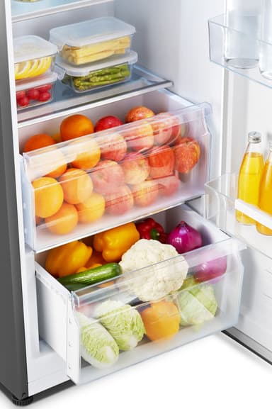 Epoq kjøleskap ETR185X26D har en kapasitet på 370 liter og flere luftventiler for jevn kjøling. Kjøleboksen og vinhyllen gir praktisk oppbevaring av ferskvarer og drikkevarer. Med NoFrost-teknologi er det lite vedlikeholdskrevende.Les mer om produktet