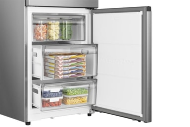 Hisense-kjøleskapet kan holde maten fersk på en vitaminbevarende måte i kjøleskapsrommet. Kjøleboksen i den nedre delen av kjøleskapet fungerer som en egen sone, og gir et ideelt oppbevaringsmiljø der frukt og grønnsaker nå kan oppbevares trygt.