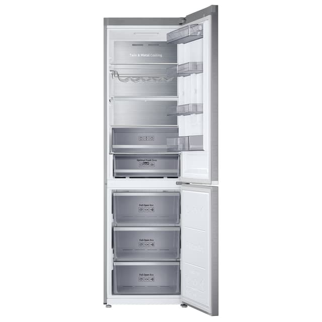Med dette Samsung kombiskapet RL41R7867SR kan du oppbevare maten din under optimale forhold og med minimalt vedlikehold takket være NoFrost-teknologien, Twin Cooling-systemet for separate kjøling av kjøleskapet og fryseren, og SpaceMax for mer effektiv bruk av plassen på innsiden.