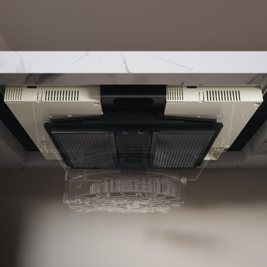 Innsiden av de fire kullfiltrene som brukes til å sirkulere luften, har en mikroskopisk porestruktur som effektivt fanger opp luktmolekyler. Det svært effektive fettfilteret (Twin Filter-løsningen) sørger for at kullfiltrene ikke tettes av fett, noe som gir betydelig bedre luktfjerning.