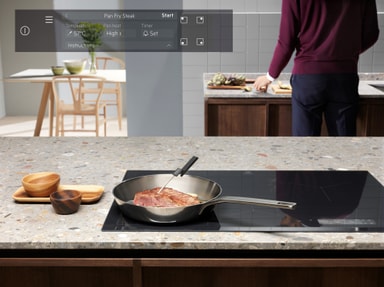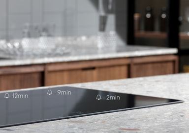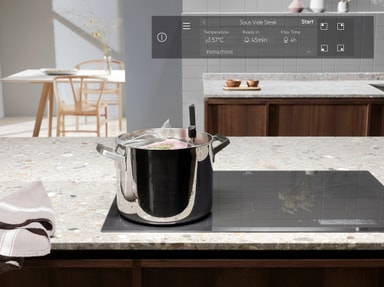 Med Hob2Hood-funksjonen kan platetoppen forbindes trådløst med kjøkkenviften for maksimal effektivitet. Filtreringen begynner umiddelbart basert på induksjonstoppens temperatur. Dermed trenger du ikke skru på viften manuelt.