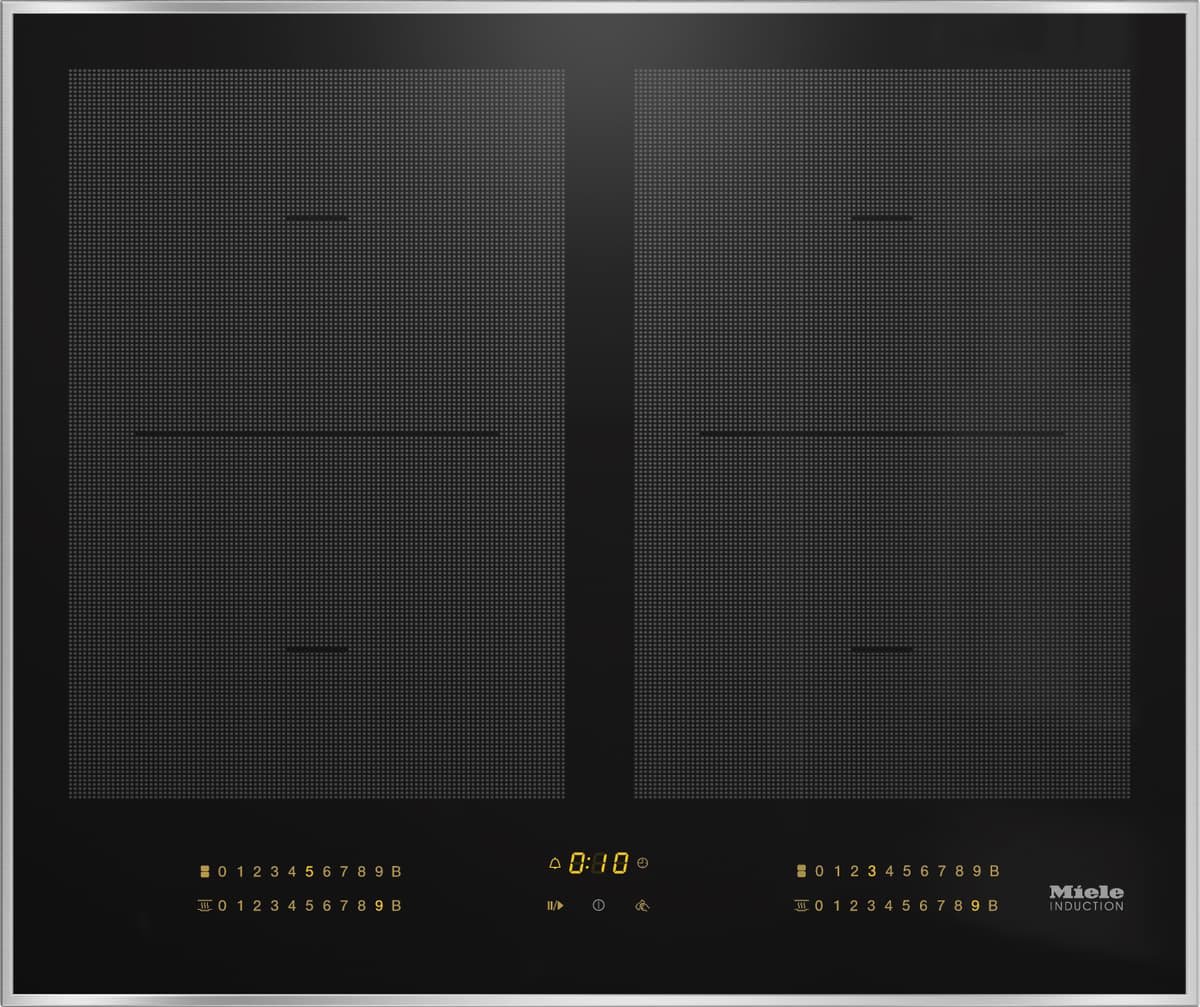 For svært rask oppvarming: Med den eksklusive Miele-funksjonen TwinBooster kan du konsentrere effekten fra to kokesoner til én enkelt sone. Eller du kan fordele induksjonseffekten individuelt – for enda mer fleksibel tilberedning.