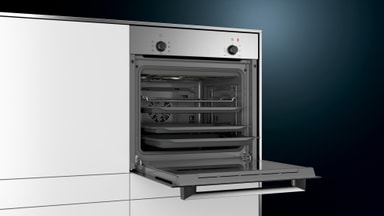 HB010FBR1S iQ100 Ovn: Øk matlagingen din med en elegant innebygd ovn i rustfritt stål med 5 allsidige oppvarmingsmetoder og rask oppvarming.Les mer om produktet